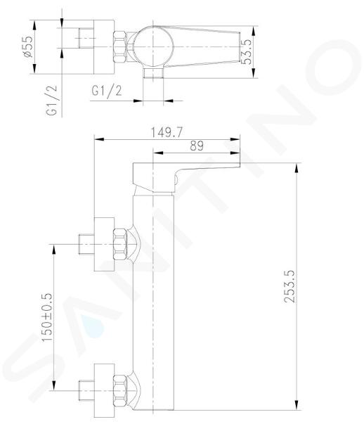 Nástěnná páková sprchová baterie kielle Harmonia se pyšní působivým moderním vzhledem. Oválné tělo se inspiruje industriálním stylem, pracuje s motivem „trubky“. Efekt je znásoben i díky chromovému povrchu. Ovládání kovovou pákou je umístěno z boku baterie, připojení hadice sprchy pak na spodní straně těla. Celkový vzhled podporují také ladící krycí rozety připojení. Baterie je určena pro instalaci k přívodním trubkám s roztečí 150 mm.