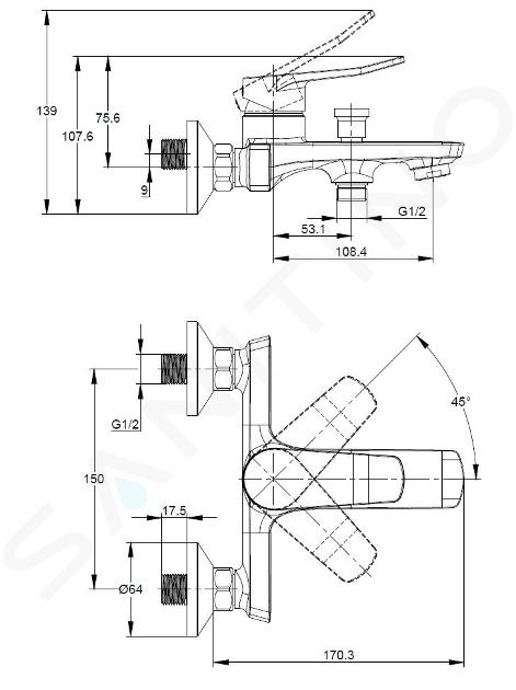 Nástěnná páková vanová baterie