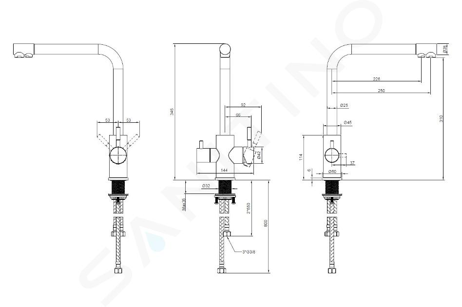 - pružné připojovací hadice o délce 550 mm