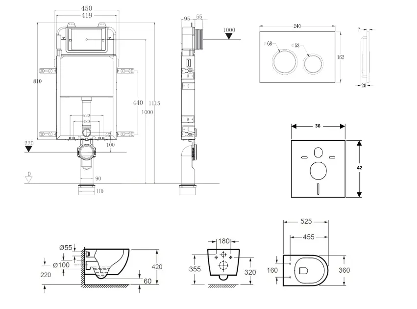Módulo de instalación pre-pared para inodoro suspendido, para albañilería