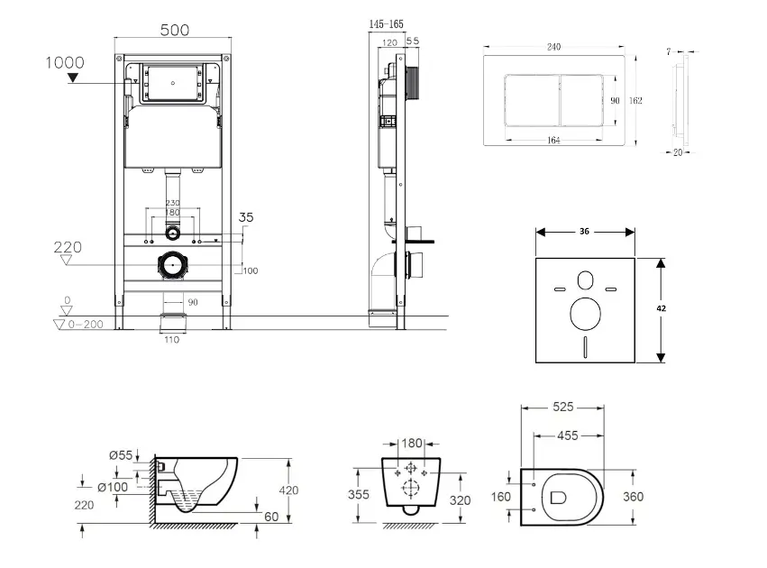 - Para la instalación de un inodoro suspendido con una distancia de conexión de 180 mm