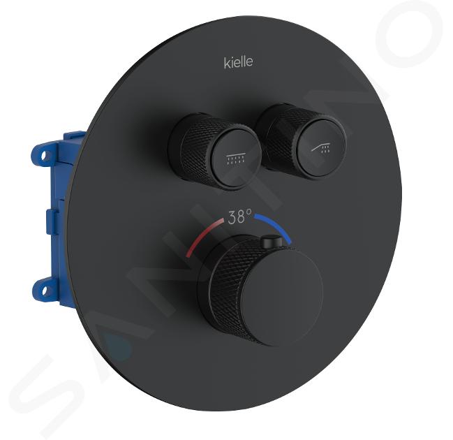 kielle Oudee - Conjunto de ducha con grifo empotrado termostático, para 2 aparatos, con accesorios y cuerpo, negro mate