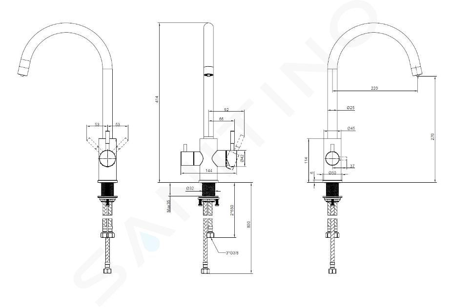- tubos de conexión flexibles con longitud de 550 mm