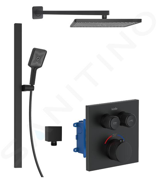 kielle Arkas I - Mitigeur thermostatique encastré, 2 sorties, avec accessoires et corps d’encastrement, noir mat