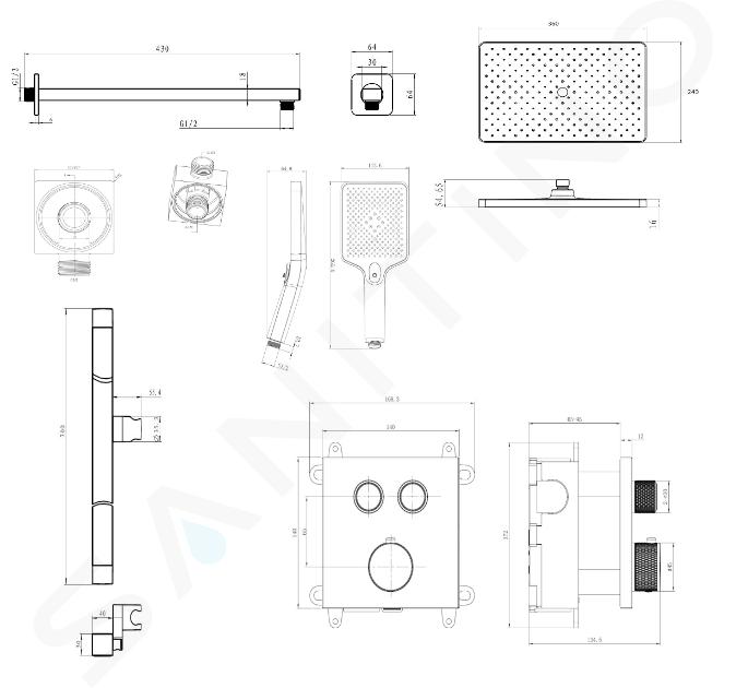 - dimensions du pommeau de douche : 120 x 110 mm