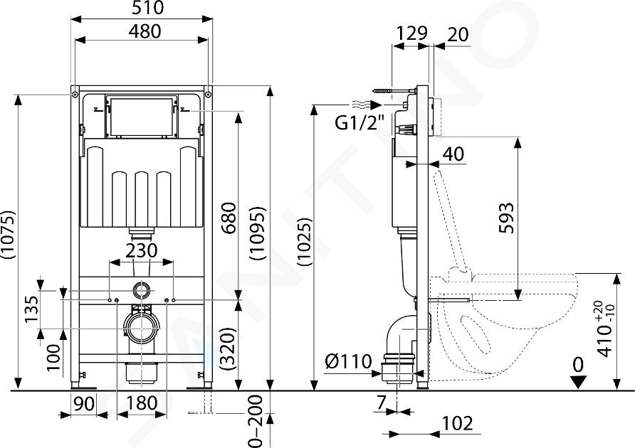 - Pour le montage d'un WC suspendu avec un espacement de raccordement de 180 mm