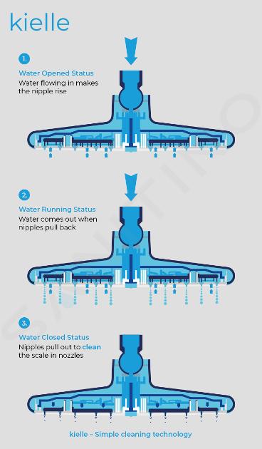 - kielle AutoClean - az öntisztító tűk a víznyomás kikapcsolásakor kicsúsznak a lyukakon keresztül, így tisztítva a fúvókákat