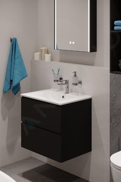 kielle Oudee - Szekrény mosdóval, 60x55x46 cm, 2 fiókos, matt fekete