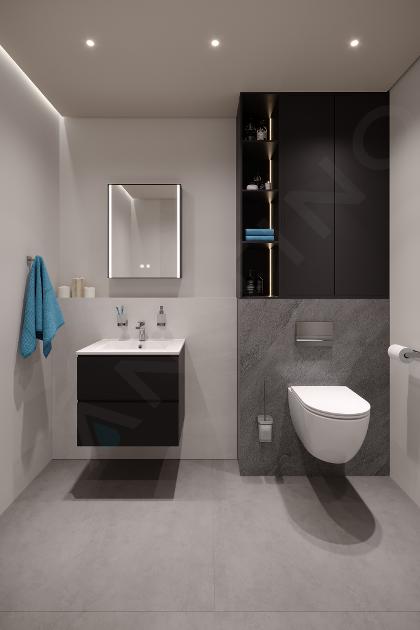 A mosdókagylós fürdőszobaszekrény első látásra megragadja a tekintetet. Ennek oka a fekete és a fehér kontrasztjával való kifinomult munka, valamint a modern, szögletes kialakítás. A szekrény előlapja kiváló minőségű MDF-ből, az oldallapok forgácslapból készültek. Az egész szekrényt matt lakkozással festik és különleges kivitelbenamely felületek véd az ujjlenyomatoktól. Így hosszú távon is szép marad.