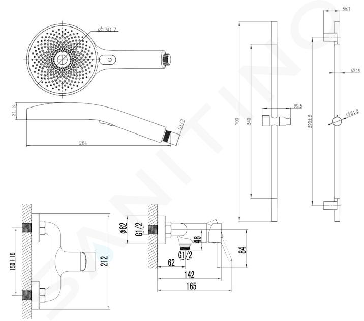 - fali konzolokkal és csúszó zuhanytartóval