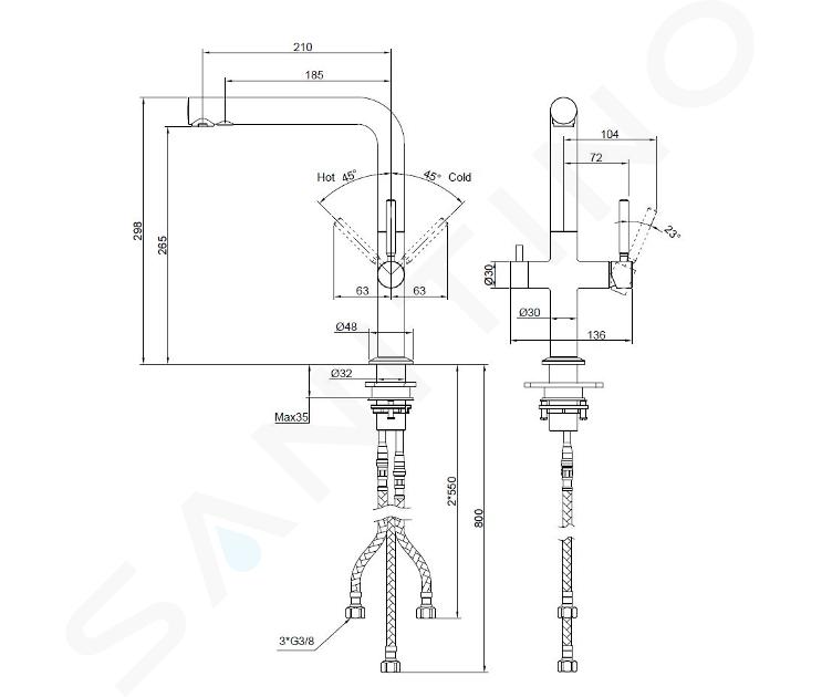 - rögzítés: egyfuratos, álló kivitelben