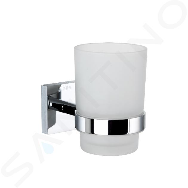 kielle Harmonia - Portaspazzolino e dentifricio con supporto, vetro opaco/cromo