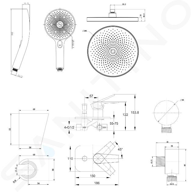 - Durchmesser der Kopfbrause: 260 mm