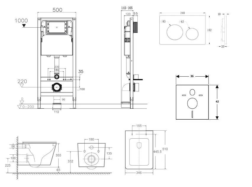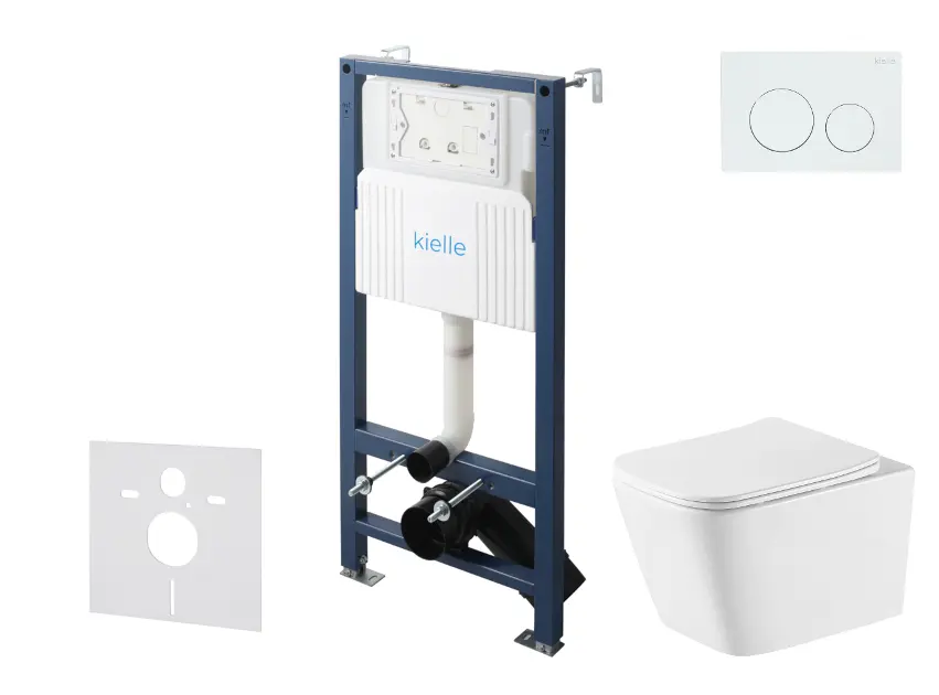 kielle Genesis New - Voorwandinbouwset, Arkas I toilet, Vortex Rimless+, softclose zitting en Gemini New I knoppen, glanzend wit