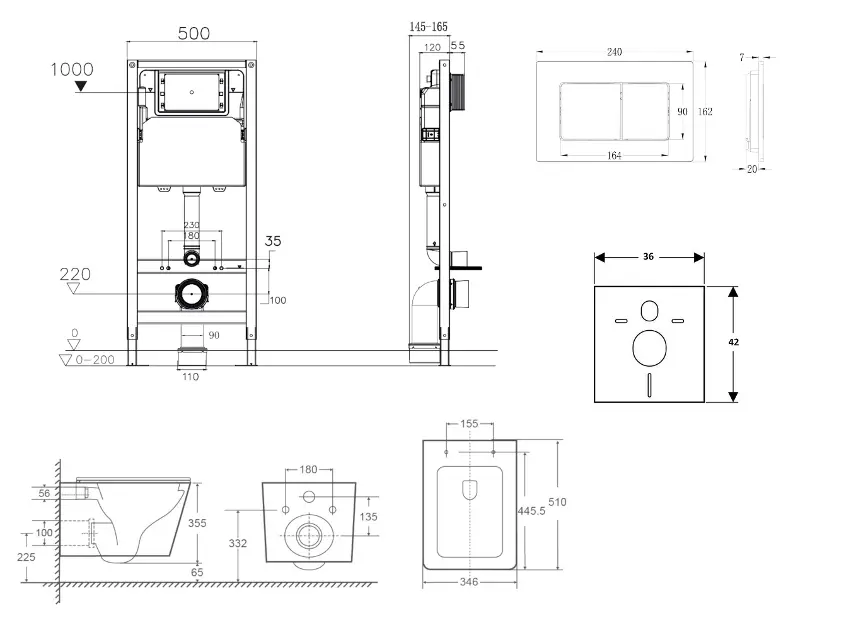 kielle Genesis New - Voorwandinbouwset, Arkas I toilet, Vortex Rimless+, softclose zitting en Gemini New III knoppen, matzwart