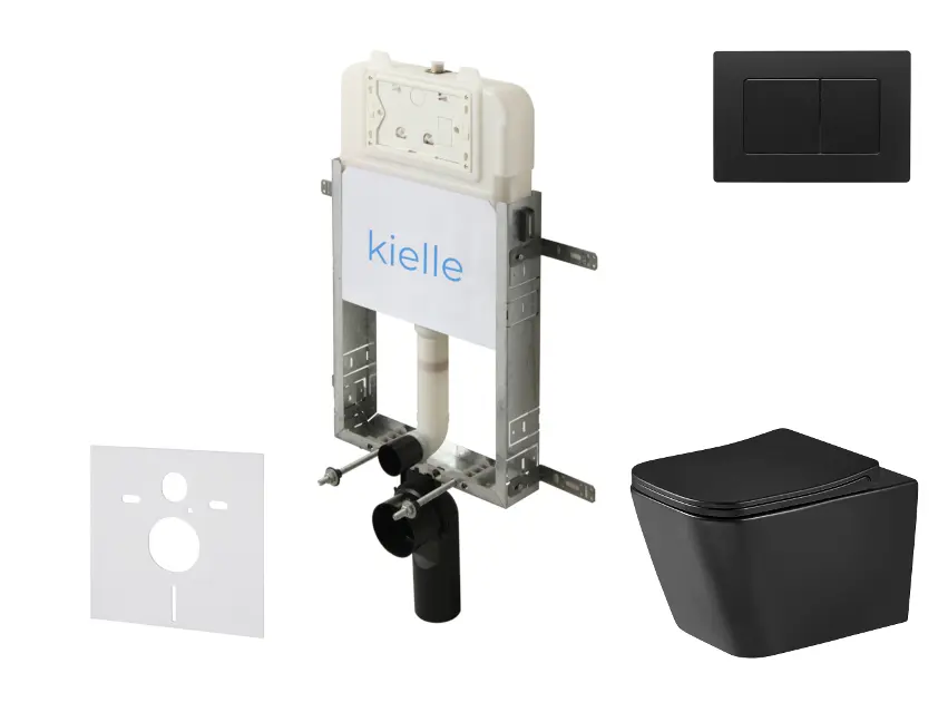 kielle Genesis New - Voorwandinbouwset, Arkas I toilet, Vortex Rimless+, softclose zitting en Gemini New III knoppen, matzwart
