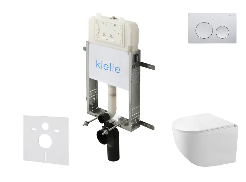 kielle Genesis New - Voorwandinbouwset, Gaia compact toilet, Rimless, softclose zitting en Gemini New I knoppen, glanzend chroom