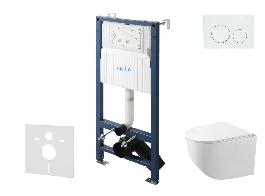 kielle Genesis New - Voorwandinbouwset, Gaia compact toilet, Rimless, softclose zitting en Gemini New I knoppen, glanzend wit