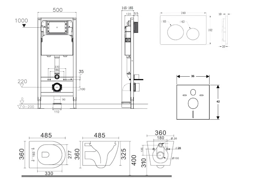 kielle Genesis New - Voorwandinbouwset, Gaia compact toilet, Rimless softclose zitting en Gemini New I knoppen, matzwart