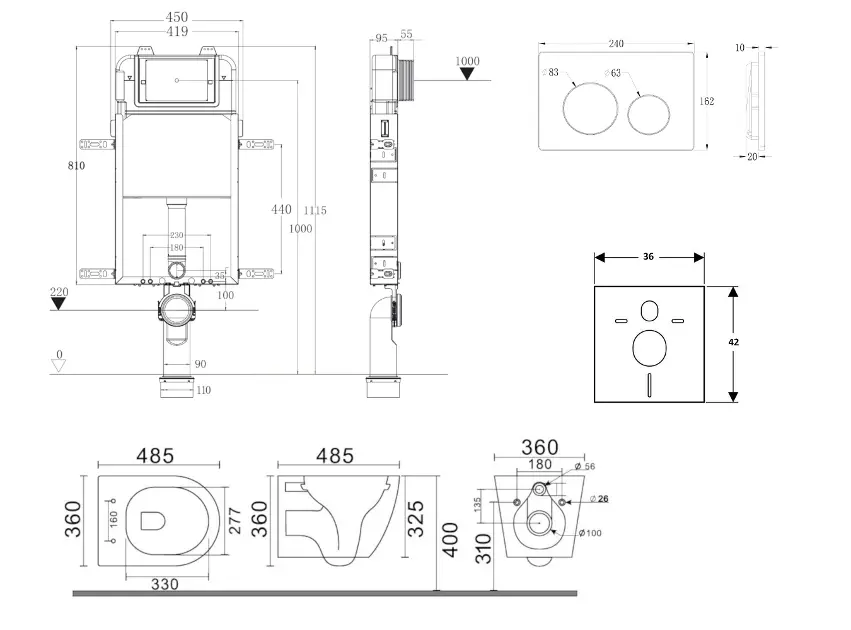 kielle Genesis New - Voorwandinbouwset, Gaia compact toilet, Rimless softclose zitting en Gemini New I knoppen, matzwart