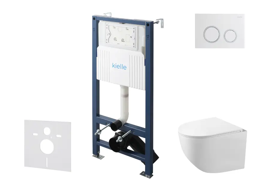 kielle Genesis New - Voorwandinbouwset, Gaia compact toilet, Rimless, softclose zitting en Gemini New II knoppen, glanzend wit/chroom