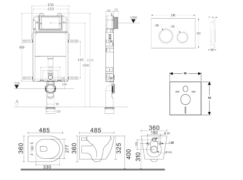 kielle Genesis New - Voorwandinbouwset, Gaia compact toilet, Rimless softclose zitting en Gemini New II knoppen, matzwart