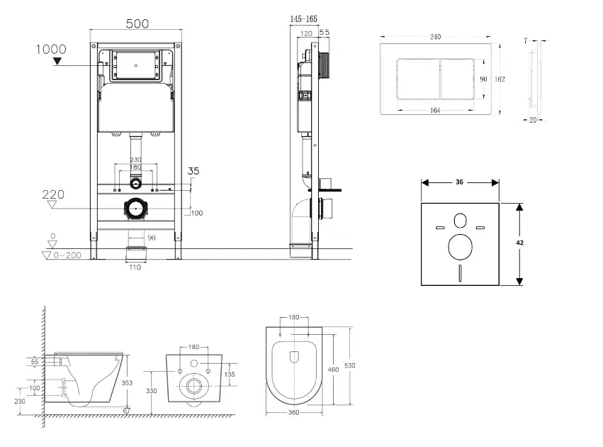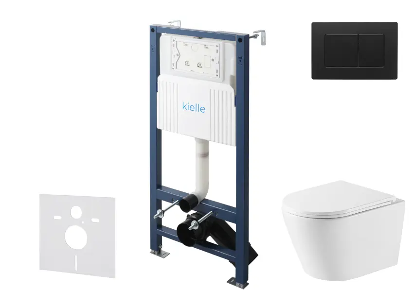 kielle Genesis New - Voorwandinbouwset, Nefia toilet, Rimless+, softclose zitting en Gemini New III knoppen, matzwart