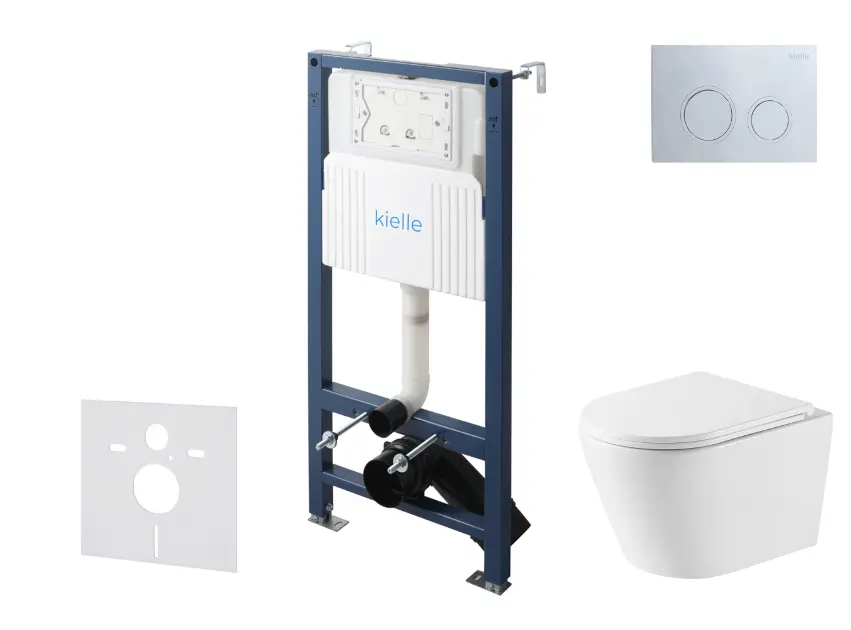 kielle Genesis New - Voorwandinbouwset,Nefia toilet, Vortex Rimless+, softclose zitting en Gemini New II knoppen, glanzend chroom