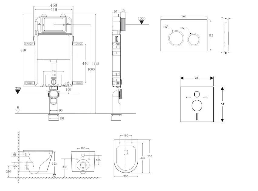 kielle Genesis New - Voorwandinbouwset, Nefia toilet, Vortex Rimless+, softclose zitting en Gemini New II knoppen, matzwart