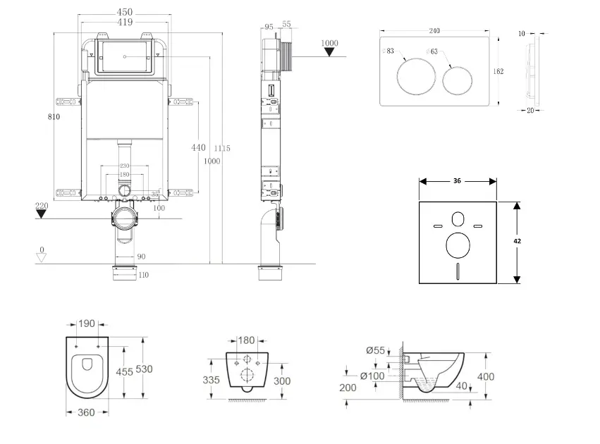 kielle Genesis New - Voorwandinbouwset, Oudee toilet, Rimless, softclose zitting en Gemini New I knoppen, glanzend chroom
