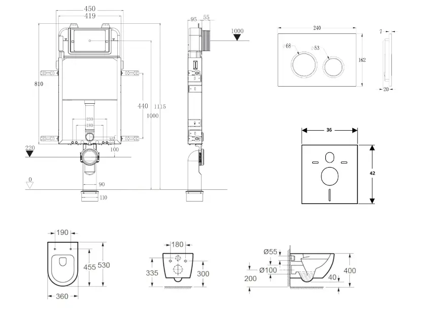kielle Genesis New - Voorwandinbouwset, Oudee toilet, Rimless, softclose zitting en Gemini New II knoppen, glanzend chroom