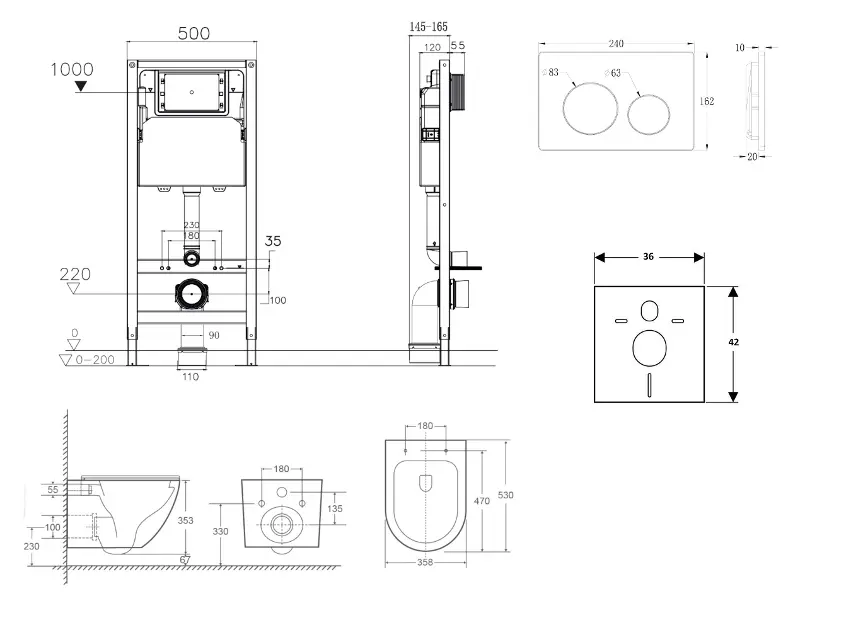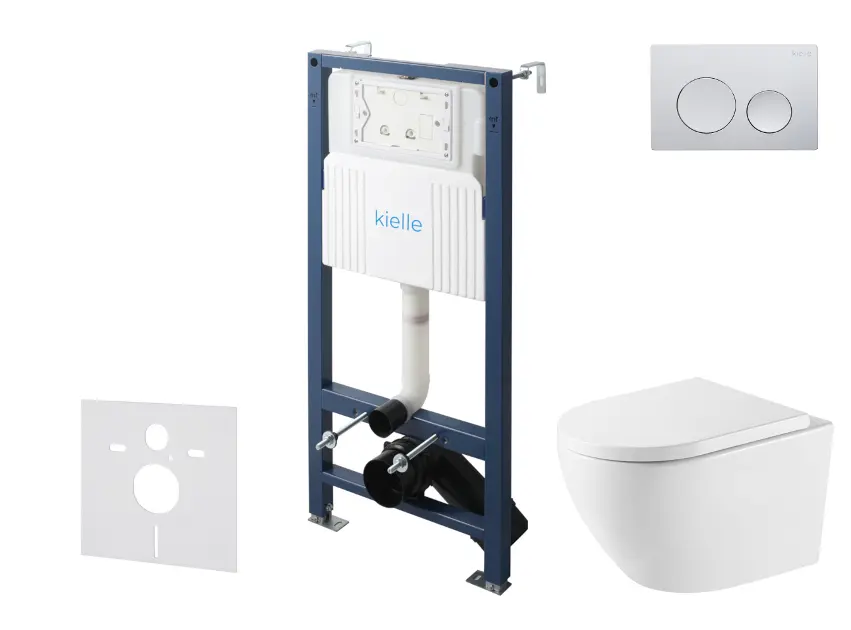 kielle Genesis New - Voorwandinbouwset, Oudee toilet, Vortex Rimless+, softclose zitting en Gemini New I knoppen, glanzend chroom