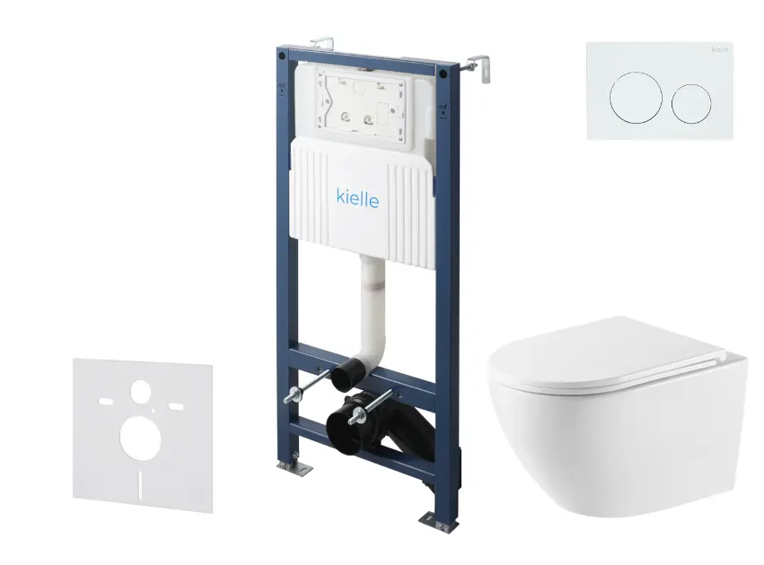 kielle Genesis New - Voorwandinbouwset, Oudee toilet, Vortex Rimless+, softclose zitting en Gemini New I knoppen, glanzend wit