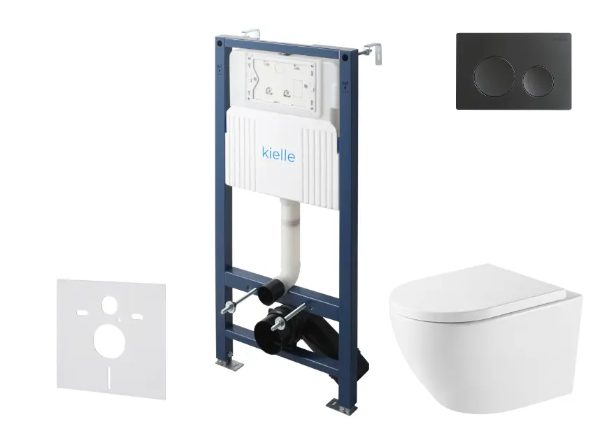 kielle Genesis New - Voorwandinbouwset, Oudee toilet, Vortex Rimless+, softclose zitting en Gemini New I knoppen, matzwart