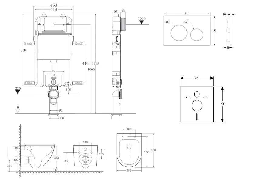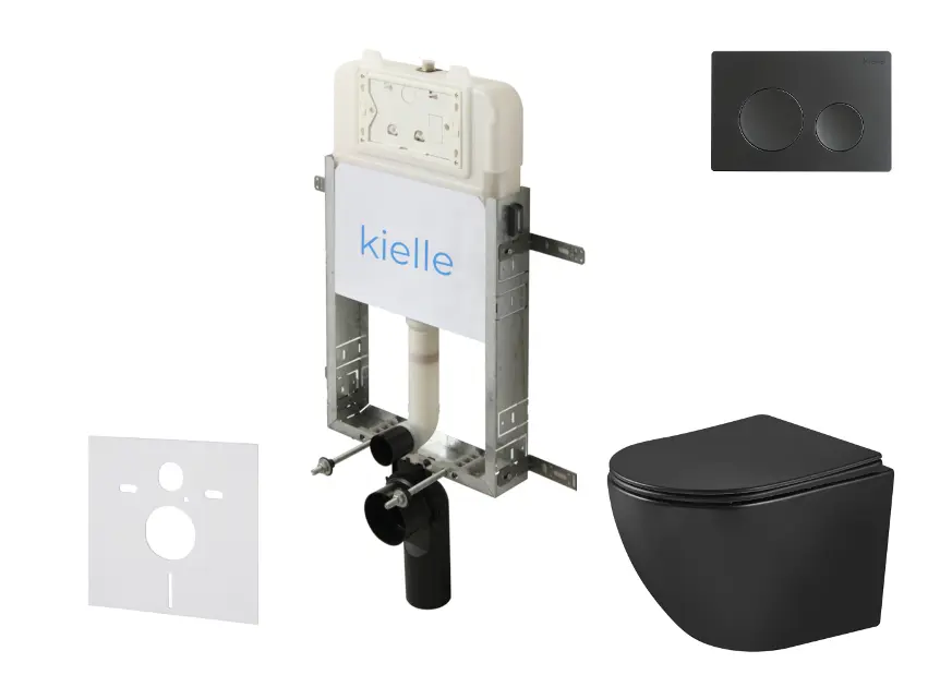 kielle Genesis New - Voorwandinbouwset, Oudee toilet, Vortex Rimless+, softclose zitting en Gemini New I knoppen, matzwart