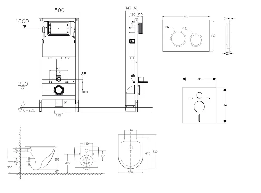kielle Genesis New - Voorwandinbouwset, Oudee toilet, Vortex Rimless+, softclose zitting en Gemini New II knoppen, matzwart