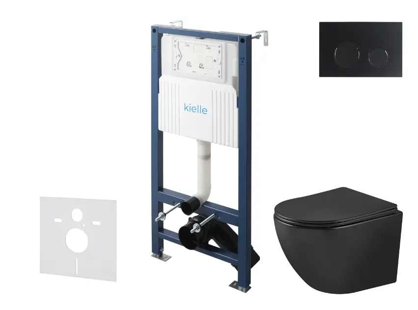 kielle Genesis New - Voorwandinbouwset, Oudee toilet, Vortex Rimless+, softclose zitting en Gemini New II knoppen, matzwart