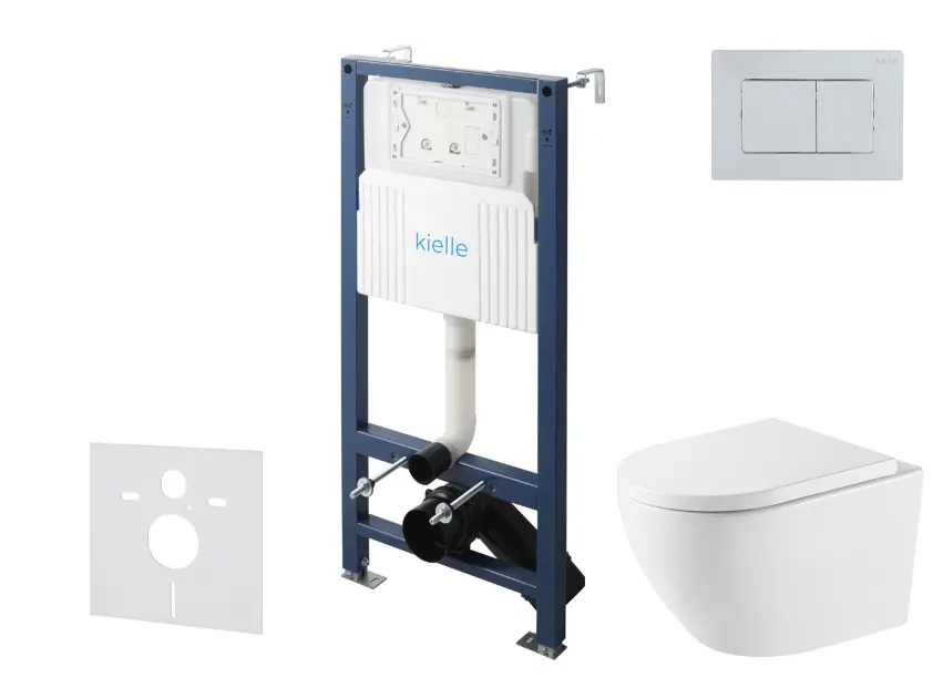kielle Genesis New - Voorwandinbouwset, Oudee toilet, Vortex Rimless+, softclose zitting en Gemini New III knoppen, glanzend chroom