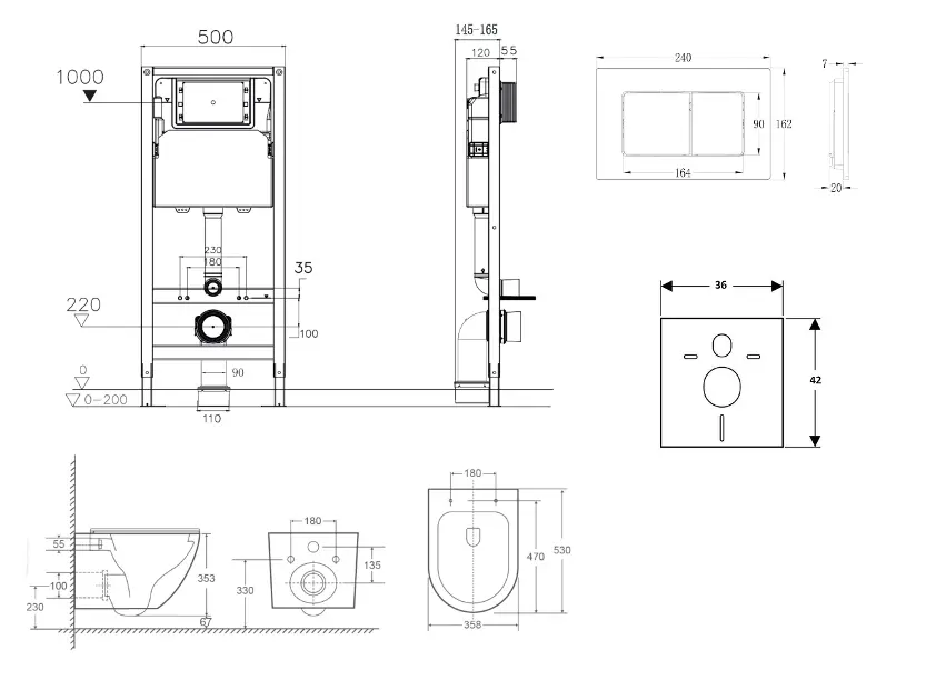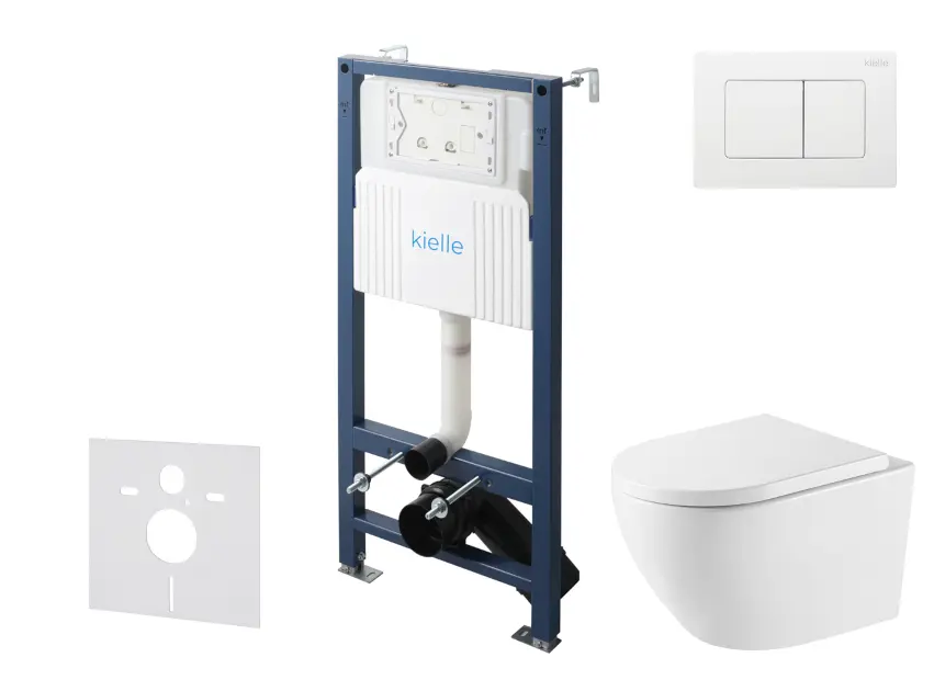 kielle Genesis New - Voorwandinbouwset, Oudee toilet, Vortex Rimless+, softclose zitting en Gemini New III knoppen, glanzend wit