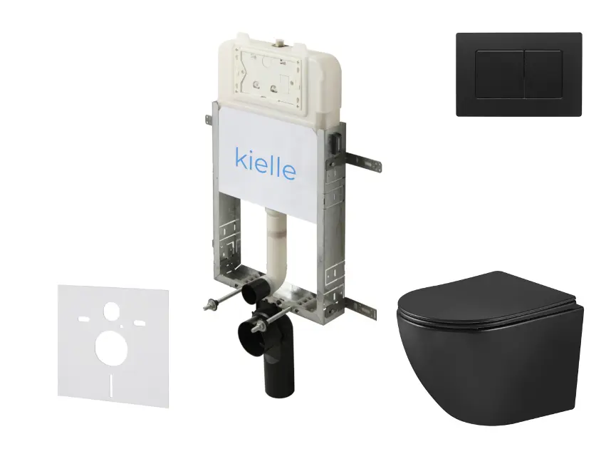 kielle Genesis New - Voorwandinbouwset, Oudee toilet, Vortex Rimless+, softclose zitting en Gemini New III knoppen, matzwart