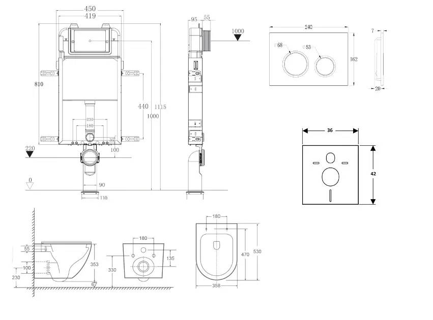 kielle Genesis New - Voorwandinbouwset, Vortex toilet, Rimless+, softclose zitting en Gemini New II knoppen, glanzend wit/chroom