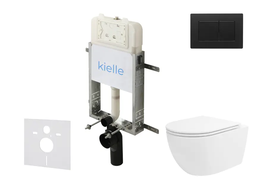 kielle Genesis New - Voorwandinbouwset, Vortex toilet, Rimless+, softclose zitting en Gemini New III knoppen, matzwart