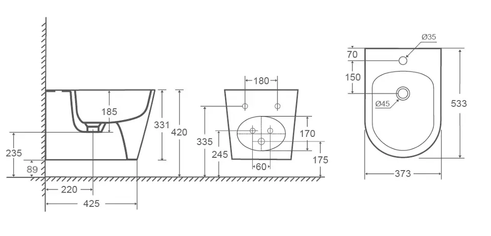 kielle Nefia - Hangend bidet, met overloop, kraangat, wit