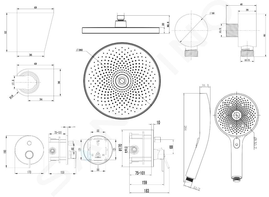 - diameter hoofddouche 260 mm