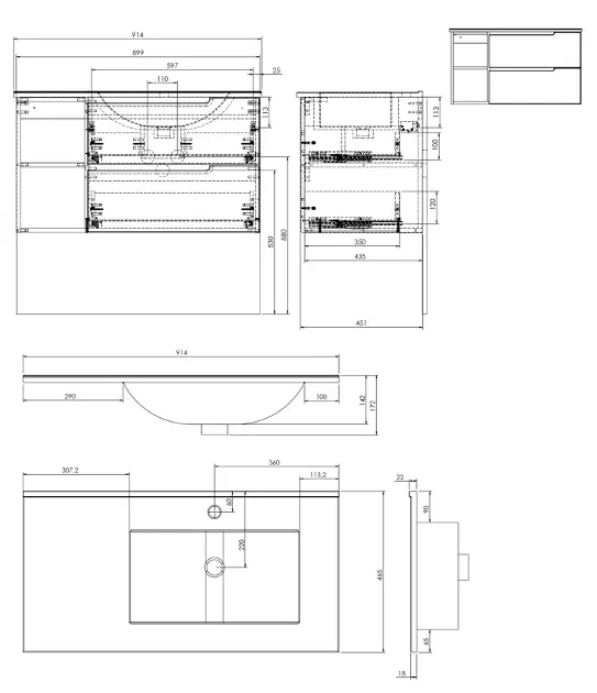 kielle Oudee - Kast met wastafel 90 cm, rechter uitvoering, glanzend wit