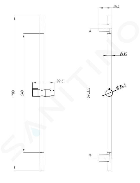 kielle Accesorii - Bară de duș 70 cm, oțel inoxidabil