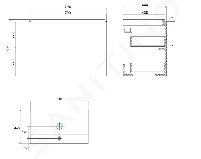 - dimensiune lavoar: 810 x 460 mm