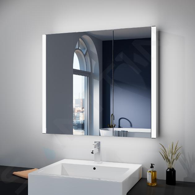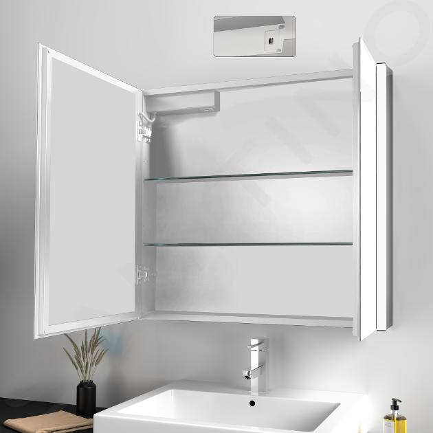 kielle Arkas I - Dulap cu oglindă și iluminare LED, încălzire și port USB, 80x70x13 cm, alb