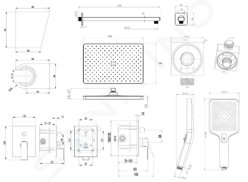 - dimensiuni duș 360 x 240 mm