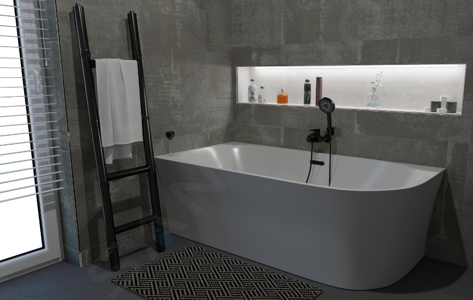 Oferă-i casei tale un echipament de lux care va îmbunătăți aspectul vizual, dar și practic al locuinței tale. Alege cada pe colț freestanding kielle Idolio.